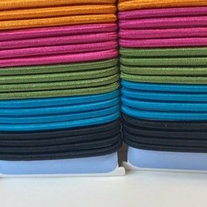 Scunci No Damage Satin Smooth Hair Elastics Pink Blue Green Yellow Black