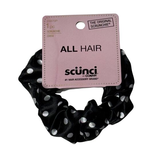 Scunci Satin Polka Dot Scrunchie Black & White Hair Tie