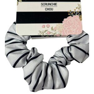 Soft white scrunchie with clean black stripes, perfect for everyday wear, ponytails, or low-mess buns. Gentle on hair with a flexible elastic stretch that holds securely without pulling. Lightweight, easy to style, and great for adding a simple polished detail to casual or work looks. New on card.