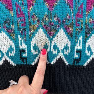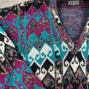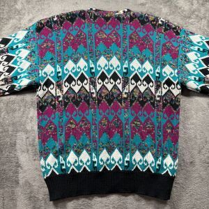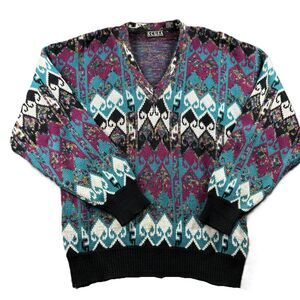 Scusa Men Vintage Sweater V-Neck Geometric Bright Print V-Neck Size XL I134