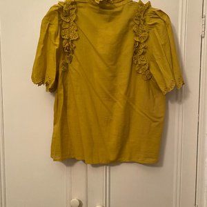 An elevated alternative to your usual rotation of tees, this Sea blouse is imbued with warm, dark-yellow color, and is detailed with eye-catching lace trim. Just add a casual pair of jeans to the mix to complete your look.