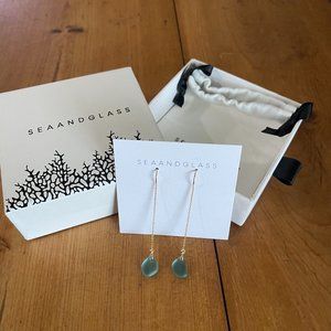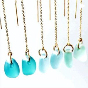 Brand new, in box. Sea And Glass - Sea Glass Threader Earrings - 14K Gold Fill - Ocean Blues