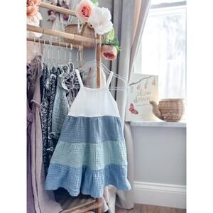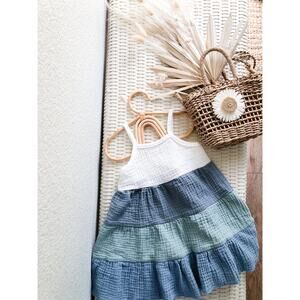 Sea Becomes Sky Colorblock Tiered Gauzy Muslin Dress 4T