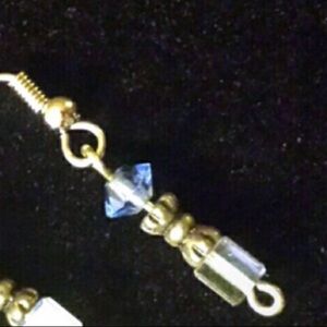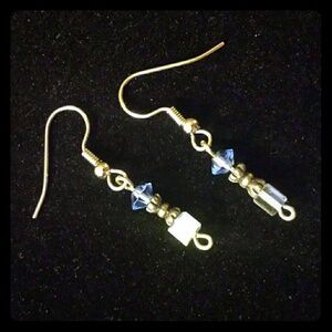 Sea Blue Crystals with Crystal Squares in Silver Earrings Handmade