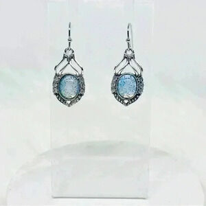 Sea Blue Flower Cabochons Rhinestone Earrings