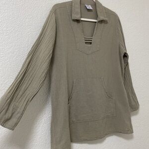 Sea Breeze Cotton Tunic Top Women's XS Gauzy Kangaroo Pocket Tan