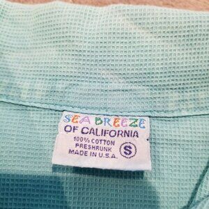 Sea Breeze Of California Women Small Button Front Top Roll Tab Shirt Cotton Blue