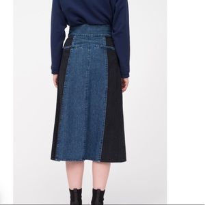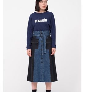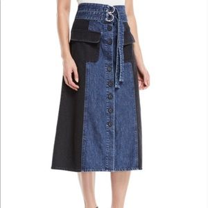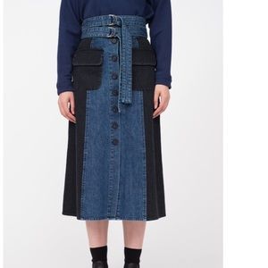 Sea two -tone A-line midi Denim Skirt . Indigo denim high waisted two adjustable D ring belts sz 8