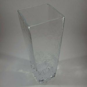 Sea Glasbruk of Sweden Hand Made 9" Clear Tulip 3x3 Square Tall Vase Glass Vtg
