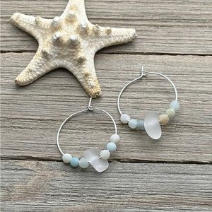 Sea Glass Earrings Boho Hoop| Genuine Seaglass| Beach Jewelry Gift For Her