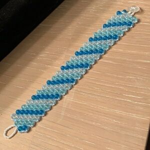 One of my favorites, beautiful sea glass beads. 7 inch length. Pretty 2 shades of blue and a frosted color. Definitely new but I don’t add tags