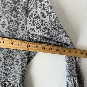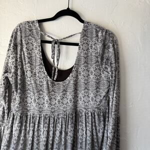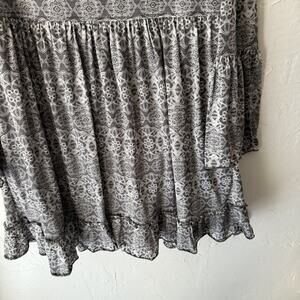 Sea Gypsies Dress Womens Medium Gray White Long Sleeve Boho Mini Ruffle Hem Tie Back