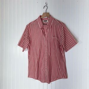 Sea Isle by Arrow VTG Red White Striped Button-Down Shirt Coastal Nautical L