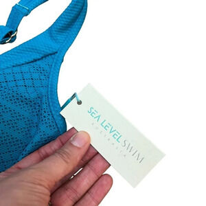 Sea Level Amazing Lace Cross Front Swim Bra Bikini Top Seafoam Blue Size 4 US