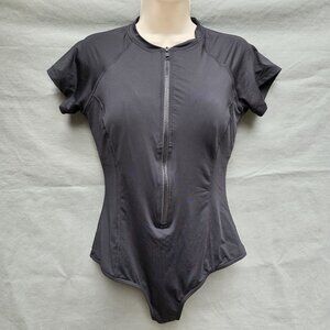 Sea Level Austrailia Black Swim Suit Rash Guard Short Sleeves Sz 8 One Piece Zip