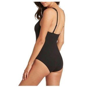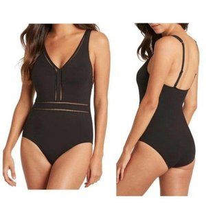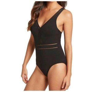 Sea Level Australia Black Spliced Cutout Dipped Neck One Piece Swimsuit 8 NWT