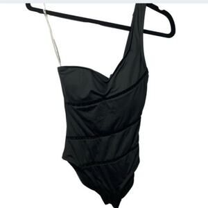 Sea Level Australia One-Shoulder Black Swimsuit Size 4 With Lace Panel Detail