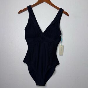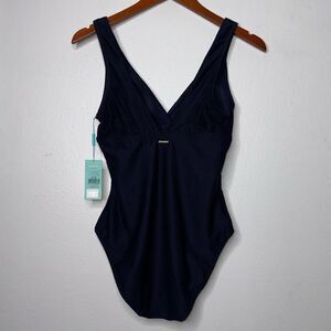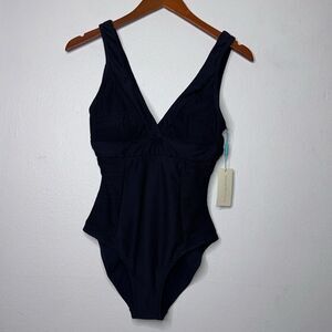 Sea Level Blue One Piece Swimsuit Deep V-neckline and Wide Shoulder Straps