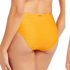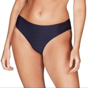 Be sleek while you swim in these mid-rise bottoms covered in textured, tonal stripes.