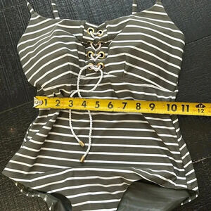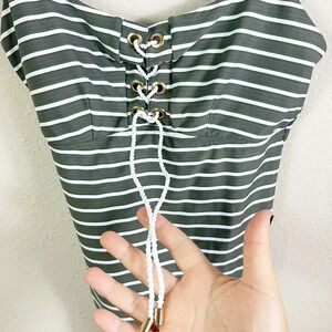 Bold stripes and lace-up rope ties bring nautical charm to this shapely one-piece swimsuit that's ready for a day at the pool / beach ☀️