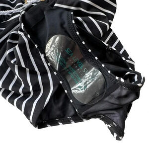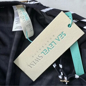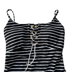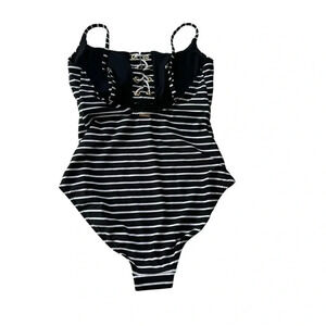 Sea Level Charmarel Lace Up Stripe Black One Piece Swimsuit Size 8 NWT