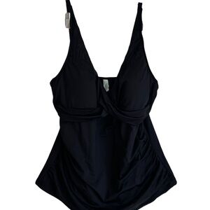 Sea Level Cross Front Multifit Cup Black Swim Tankini Top NWOT