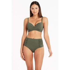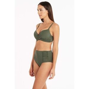 Sea Level Eco Essentials Gathered Side High Waist Pant Size 4. Sea Level Swim is committed to creating collections in the most mindful and sustainable ways. Our swimsuits are made from advanced eco-friendly fabrics which use regenerated nylon yarns derived from pre-consumer waste. These recycled textiles maintain a durable soft feel and premium quality. Power mesh support front and back. 85% Recycled Nylon 15% Elastane. Gentle wash, separately in cool water.