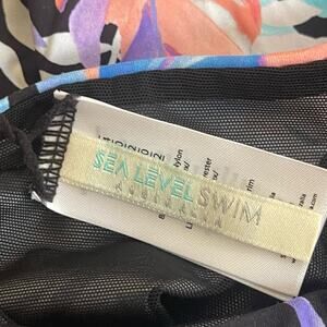 Sea Level Floral Print Mid Rise Bikini Bottoms Black Womens Size 10