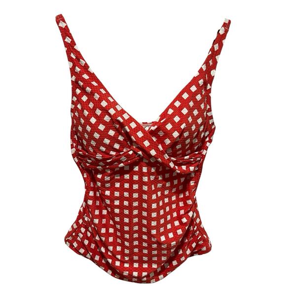 Sea Level Gingham Tankini Top Women's 8 Cross Front Padded