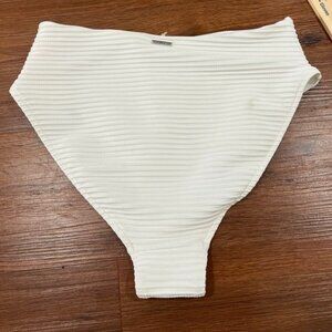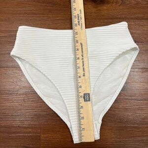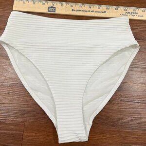Sea Level Australia, white bikini bottom, ribbed swimwear, high waist swim, textured bikini, full coverage bottom, summer essentials, beachwear, stretchy swim, minimalist bikini, lined swim bottom, resort swimwear, poolside fashion, flattering cut, swim fashion, women’s medium swim, vacation swimwear, tummy control swim, comfy bikini bottom, classic white swim.