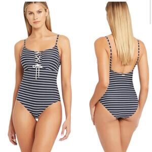 Sea Level Swim Charmarel Lace Up Bralette One Piece Black Stripe 6 NWT