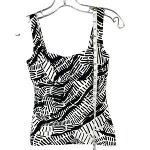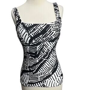 Sea Level Swim Tankini Top Womens 8 Black White Pampas Square Neck Multifit Cup