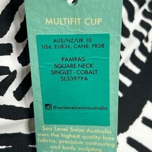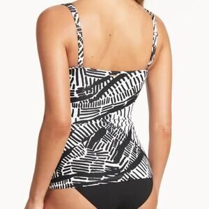 Sea Level Swim Tankini Top Womens Size 8 Black White Pampas Square Neck Multifit Cup