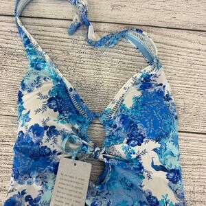 Sea Level Swim Women's Blue Floral Key Hole Halter One Piece Swimsuit Size 6