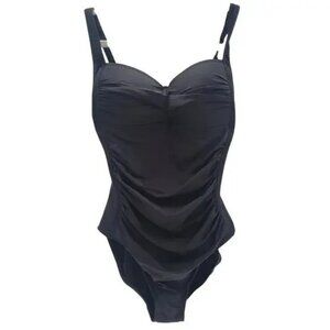 Attract attention in this shapely one-piece designed with a twisted sweetheart neck and flattering front ruching.
