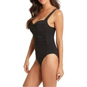 Sea Level Twist Front One Piece black swimsuit NWT Women 8 sweetheart neckline Pinup Girl retro