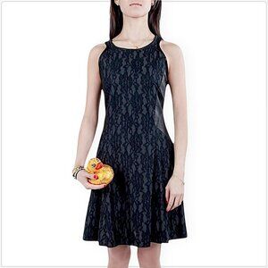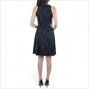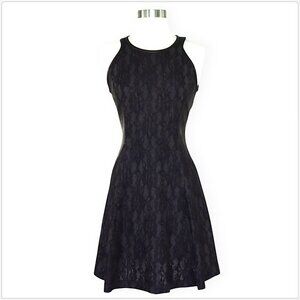 Sea NY Barneys Black Lace Distressed Leather Panel Fit & Flare Dress New NWOT 2