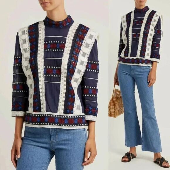 Sea NY Ila lace 3/4 sleeve top | blue multi sz 0 $365
