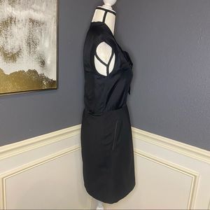 Sea New York Mixed Media button down leather accented dress with pleat in black