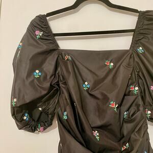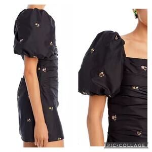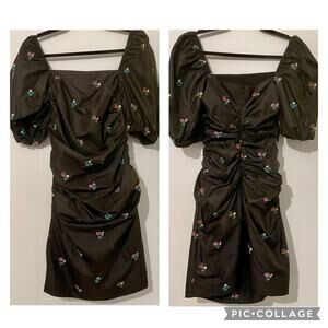 Sea NY Rubina Embroidered Mini Dress Puff Sleeve Floral Ruched