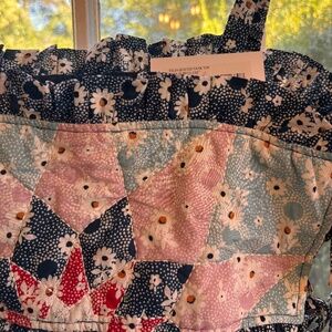 The Talia floral quilted tank features ruched straps and side tie detailing.