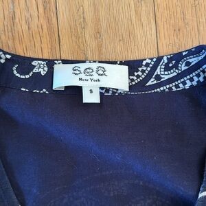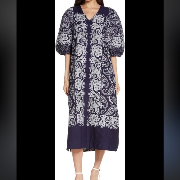 Sea NY | Theodora Paisley Print | Puff Sleeve | Midi Shift Dress in Navy | S