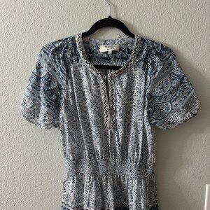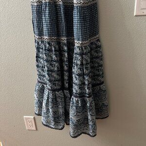 Sea New York Bella Midi Dress Women's size 8 Blue Floral Boho Peasant