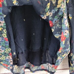 Sea New York Blouse Size 2 Top Floral Peasant V-Neck Tassel Ruffle Long Sleeve