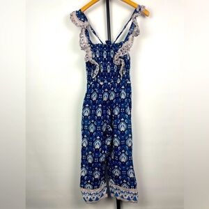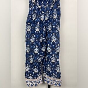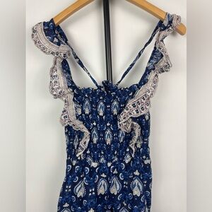 Sea New York Blue Floral Heart Boho Cotton Smocked Jumpsuit