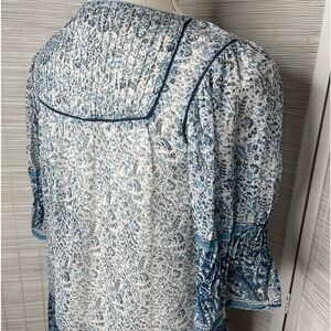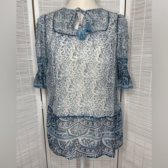 Sea New York Blue Floral Tassel Tie Blouse Size 0