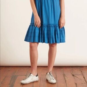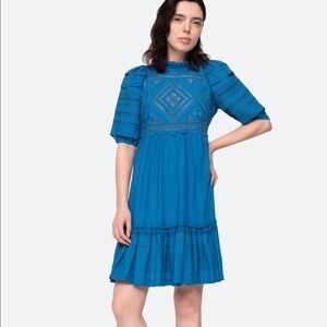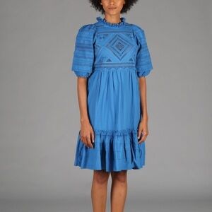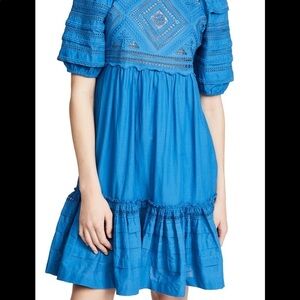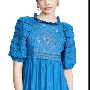 Stunning mini dress from sea New York. Rich blue in color with puff sleeves and cutout chest.