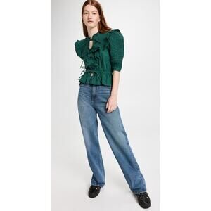 Sea New York Casey Top Smocked Tie Front Puff Sleeves Ruffle Women's XXS Green