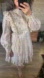 Sea New York Cream Metallic Striped Eyelet Ruffle Long Puff Sleeve Short Mini Dress Size 12