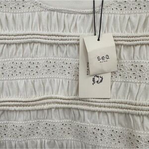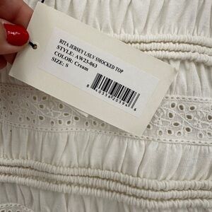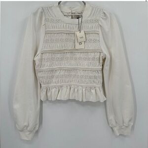 Sea New York Cream Rita Jersey Long Sleeve Smocked Top size S Peplum Eyelet Lace